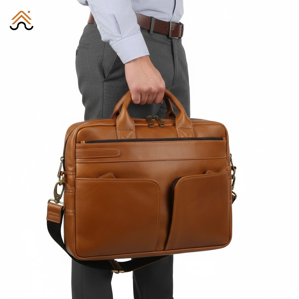 Carry your essentials in style with the Classic Messenger Laptop Bag in Tan Leather, a perfect blend of elegance and everyday practicality. Crafted from premium genuine leather, this bag offers a timeless look that suits both professional and university life. Its spacious interior easily fits your laptop, books, and documents, while the soft cotton fabric lining keeps everything protected and neatly organized.