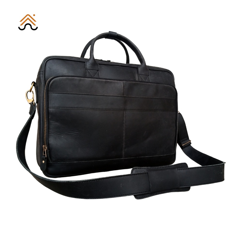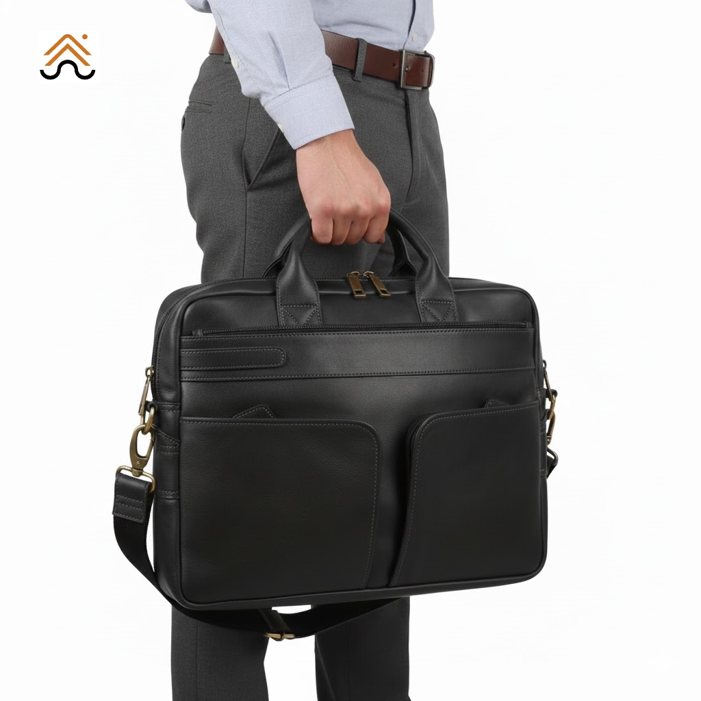 Elevate your professional presence with our leather laptop bag, meticulously designed for the modern executive who values both form and function. This premium black leather briefcase is the ultimate companion for your daily commute or international business travel.